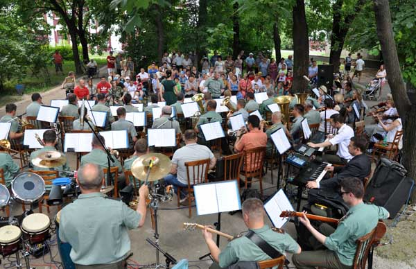 Первый концерт прошел накануне в Чобручах. Артисты выступали прямо в парке. Здесь была организована импровизированная сценическая площадка. Звуки мелодичных украинских песен, зажигательных молдавских наигрышей, популярных джазовых композиций разносились по всей округе, собрав возле сцены множество слушателей.