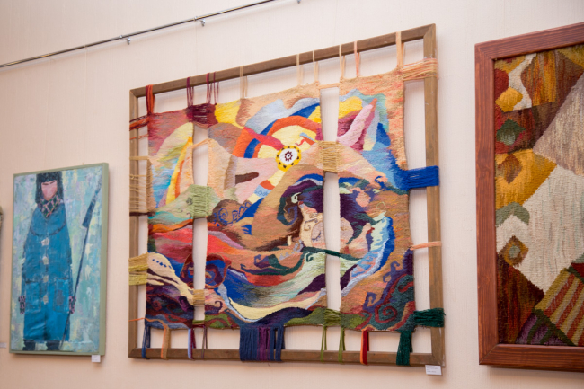 В двух залах образовательного учреждения: читальном и актовом уютно расположилось 25 полотен, выполненных в различных техниках. Мастер работала с акрилом, гуашью, горячим батиком, маслом. Также были представлены вышивка и гобелен.
