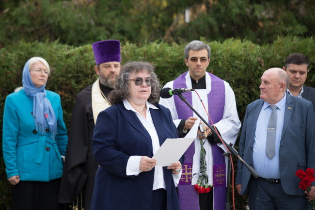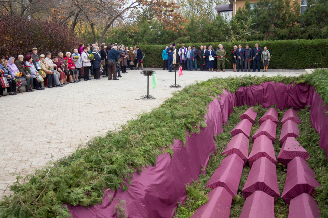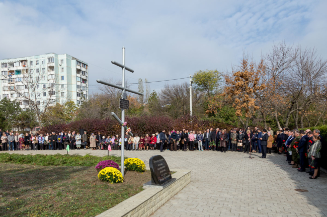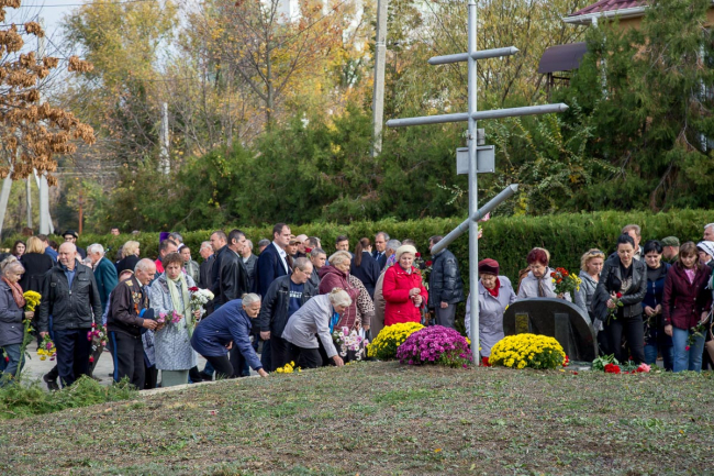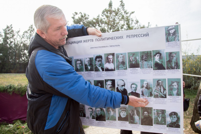Тирасполь, 30 октября. /Новости Приднестровья/. В Тирасполе вспоминали жертв политических репрессий. Их останки покоятся в братской могиле, на месте бывшего порохового погреба Святого Владимира. Первые имена стали раскрывать в 90-е, когда начали работу по эксгумации тел и рассекречиванию расстрельных списков. Сколько всего было загублено жизней, сложно сказать даже историкам, цифры называют разные – от 5 до 6 тысяч человек. На «народный» суд в Тирасполь, бывший тогда столицей МАССР, свозили не только горожан, среди убитых есть жители других населённых пунктов, и не только приднестровских.