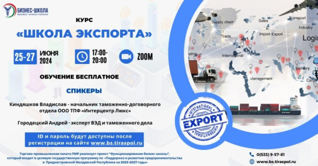 Тирасполь, 4 июня. /Новости Приднестровья/. Торгово-промышленная палата ПМР объявила о начале регистрации на курс «Школа экспорта».