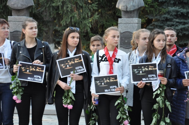 Школьники, студенты, преподаватели, члены общественных организаций и руководство района зажгли свечи в память о безвременно ушедших учащихся и сотрудников Керченского политехнического колледжа.