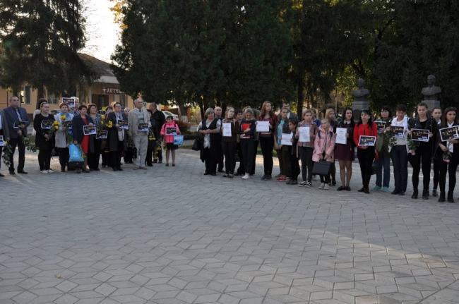 Памятная акция, связанная с массовым убийством в Керченском политехническом колледже, проходит в Рыбнице. Жители и гости города приходят на площадь почтить память погибших во время трагедии.