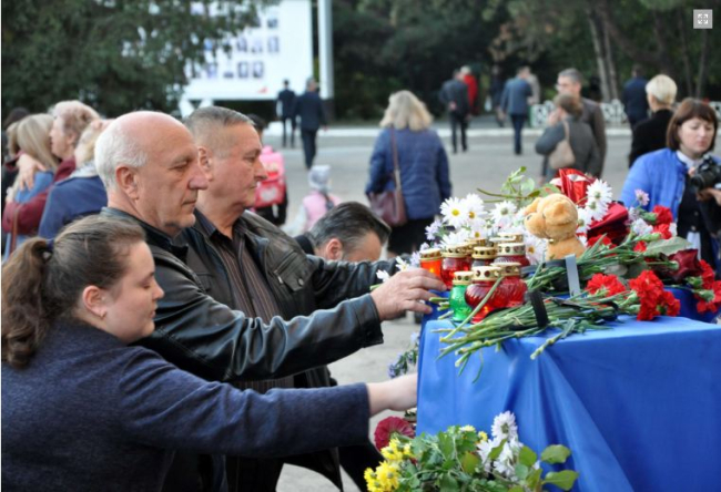 Глубокую скорбь крымчан разделили глава района Вячеслав Фролов с супругой. Они возложили свечи и цветы к временному мемориалу. Акцию поддержали председатель горрайсовета Вадим Лозовский, руководители учреждений и организаций, студенты, школьники, взрослые жители и гости города. Пострадавшим в трагедии рыбничане желают скорейшего выздоровления.