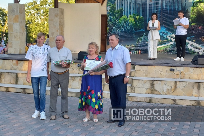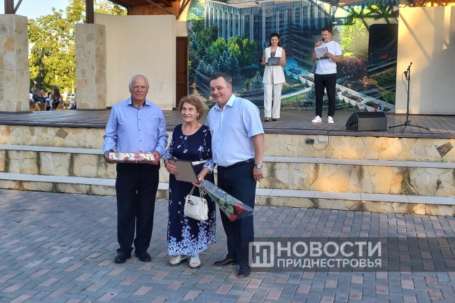 Поздравляли на празднике и семьи, которые прожили в браке 50 и более лет. Подарки от госадминистрации получили 5 супружеских пар. Золотой юбилей совместной жизни отметили в этом году Валерий и Алла Стыренко. Валерий Лаврентьевич и Алла Тимофеевна приехали в молодости из Украины. Все эти годы трудились в Дубоссарах, и этот город стал для них родным. Супруги вырастили дочь, помогают воспитывать троих внуков и правнука.