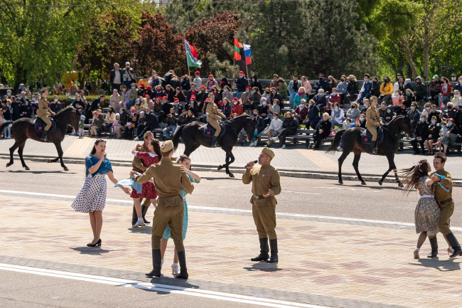 Парад Победы продолжило дефиле конного расчёта МВД ПМР