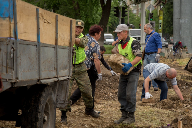 «Мы высаживаем лиственные породы деревьев и кустарников – катальпу, акацию, барбарис, спирею и биоту, которую разместим вдоль тропинки. На этой площади много бытового мусора, мы, конечно, завезли землю, но всё равно этот мусор останется здесь, а эти породы весьма неприхотливы и смогут приняться здесь», – пояснила главный специалист по озеленению Управления городского хозяйства Татьяна Негривода.