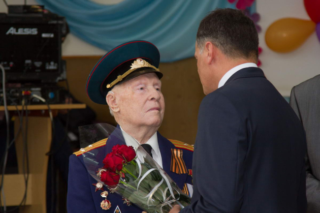 С особым вниманием притихшие школьники слушали поздравления из уст ветерана Великой Отечественной войны полковника в отставке Николая Васильевича Ануфриева.