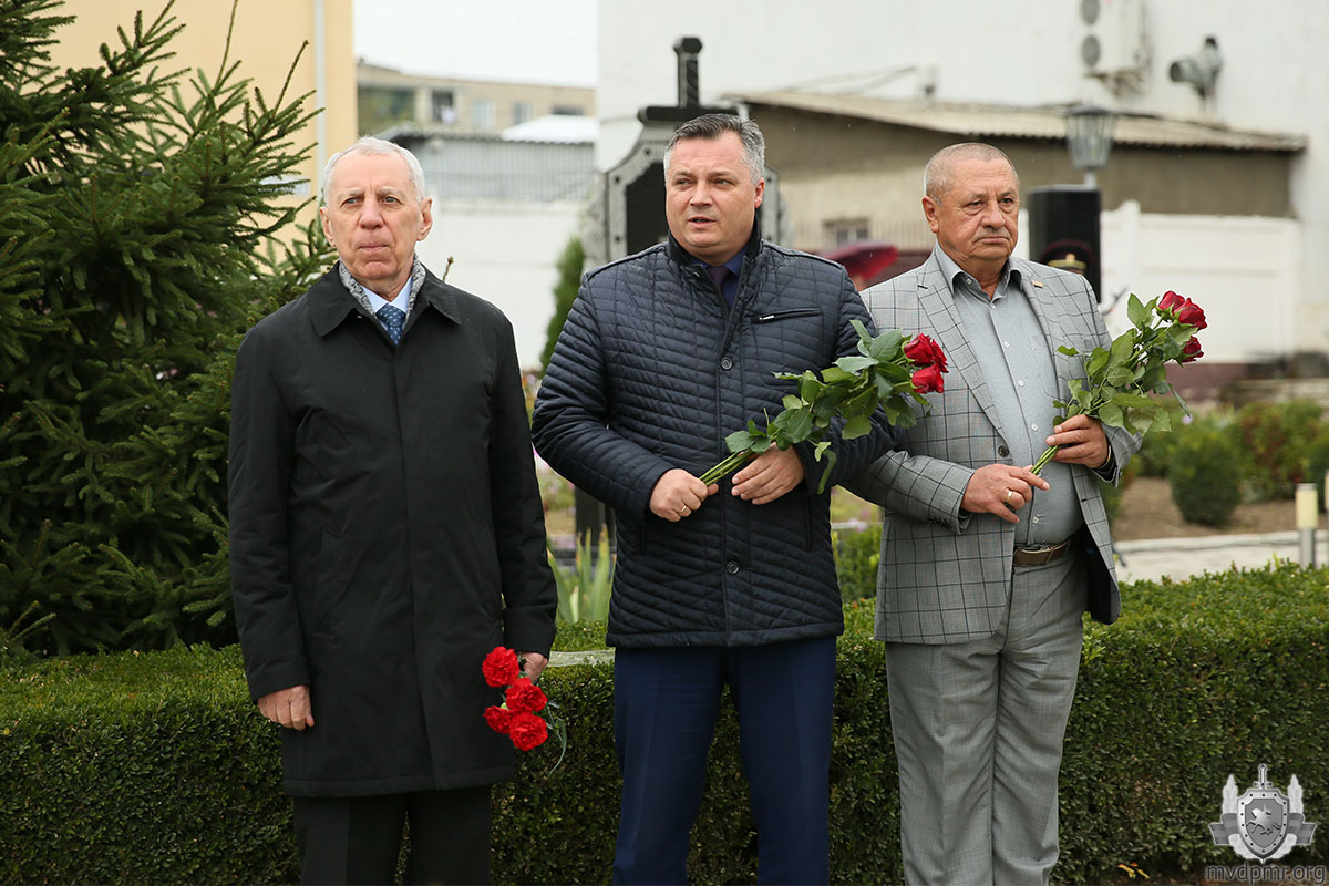 В память о сотрудниках милиции, которые погибли при исполнении служебного долга, участники церемонии возложили цветы к гранитному знаку в РОВД и к месту гибели первого начальника Дубоссарской милиции Игоря Сипченко.