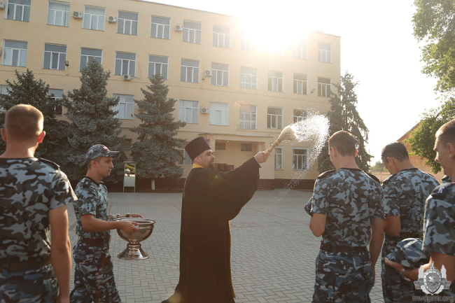 Продолжение церемонии – окропление святой водой курсантов, преподавателей, гостей и молитва. После – торжественный марш. В завершение – показательные выступления первокурсников. Они продемонстрировали приёмы рукопашного боя с оружием и без него. Всему этому молодое пополнение научилось в период курса молодого курсанта.