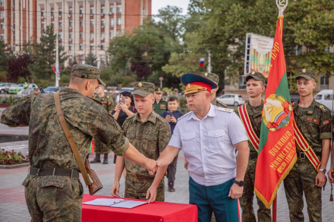 Тирасполь, 5 сентября. /Новости Приднестровья/. В канун Дня создания Вооружённых сил ПМР новобранцы Военного института Министерства обороны приняли военную присягу.