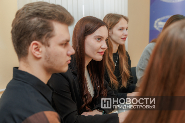 Первый проректор также задала вопросы студентам: почему они выбрали свою специальность и кем видят себя через 20 лет. Среди ответов звучали мечты об открытии центра психологической помощи в Приднестровье, о создании лучших условий для IT-специалистов в республике, а также о семье, детях и путешествиях.