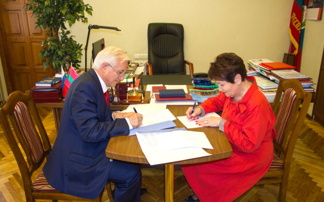 Тирасполь, 23 октября. /Новости Приднестровья/. Приднестровский госуниверситет им. Т. Г Шевченко подписал договор о сотрудничестве с Московским психологическим институтом и Барановичским государственным университетом (Белоруссия). Соглашения были достигнуты в рамках международной научно-практической конференции «Современные тенденции развития дошкольного образования и профессиональной подготовки кадров».