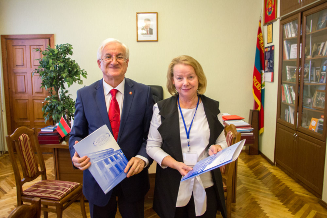 20 октября ректор ПГУ, профессор Степан Берил встретился с представителями вузов-партнёров – доктором психологических наук, профессором ФГБНУ «Психологический институт» Ларисой Митиной и кандидатом педагогических наук, доцентом Барановичского государственного университета Зоей Лукашеней.