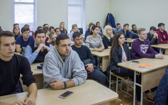В процессе выступления лектор постоянно обращался к студентам с вопросами, предлагал принять участие в решении ситуативных задач.