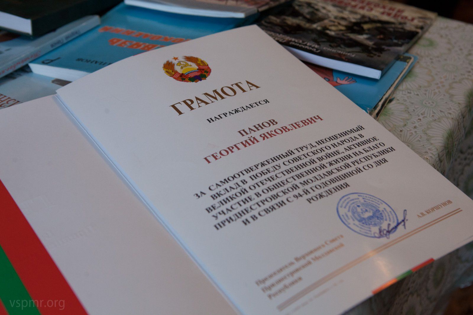 «Для города Бендеры это человек-легенда. Мы можем наблюдать, сколько заслуженных наград у него на груди. Особенно ценно в Георгии Яковлевиче то, что он передает свой опыт, все свои знания и умения, накопленные за долгую жизнь, новому поколению, в первую очередь детям. До последнего времени уделял внимание встречам с молодежью, рассказывал им про то, как необходимо правильно жить, чтобы не было стыдно смотреть людям в глаза. Мы желаем Георгию Яковлевичу еще долгих лет жизни, здоровья. Подвиги героев никогда не остаются за кадром, и мы должны о них помнить», – отметил депутат Верховного Совета Антон Онуфриенко.