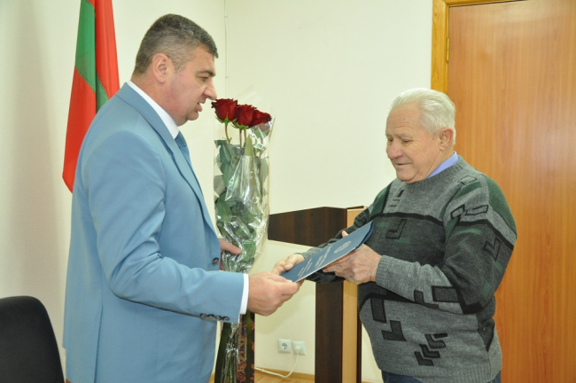 От имени Президента Вадима Красносельского награду Василию Караджову вручил глава госадминистрации Тирасполя Олег Довгопол.