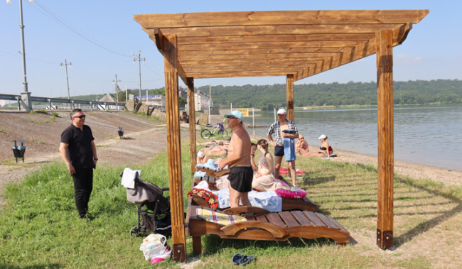 Пляж в Дубоссарах оборудовали перголами с шезлонгами