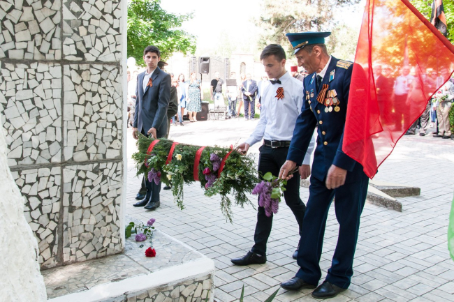 05 Май, 2017, 17:18Тирасполь, 5 мая. /Новости Приднестровья/. «Слава Героям Великой Победы» — таким транспарантом сегодня встречал всех прохожих посёлок Ново-Тираспольский. Отмечать свой День Победы за несколько дней до общего — уже традиция. Всё дело в том, что студенты расположенных здесь учебных заведений на праздничные дни разъезжаются по домам, а потому, чтобы и они принимали участие в таких мероприятиях, актив посёлка решил проводить их до 9 мая.