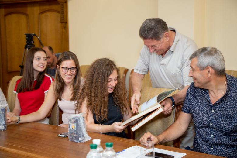 Кроме своих впечатлений о Приднестровье, девочки также рассказали о своих семьях и о том, чем увлекаются. На память гостьям из Италии подарили целый набор сувениров с символикой нашей республики. Олег Баев лично презентовал свою книгу «Век под крылом белого аиста».