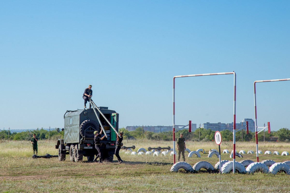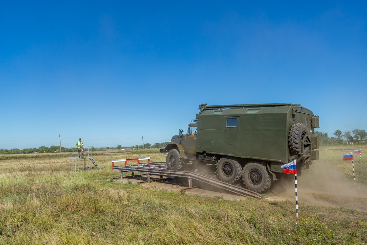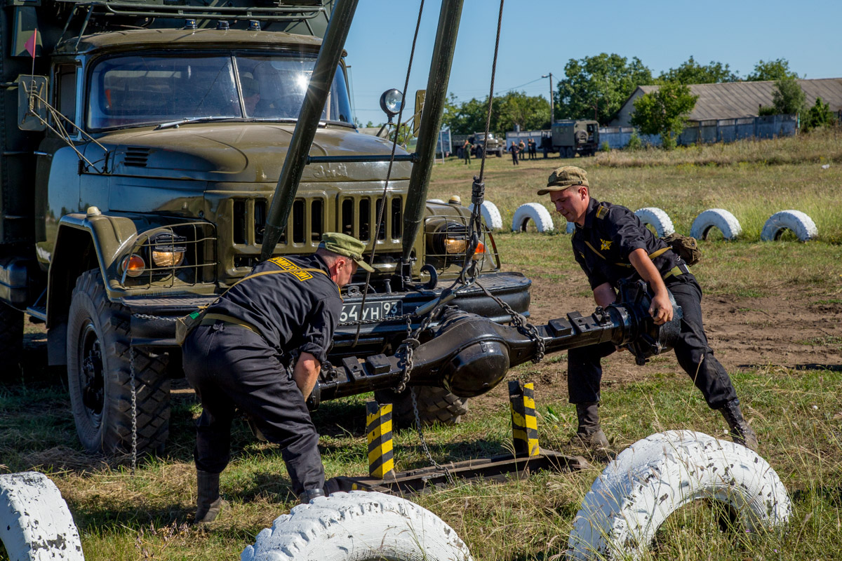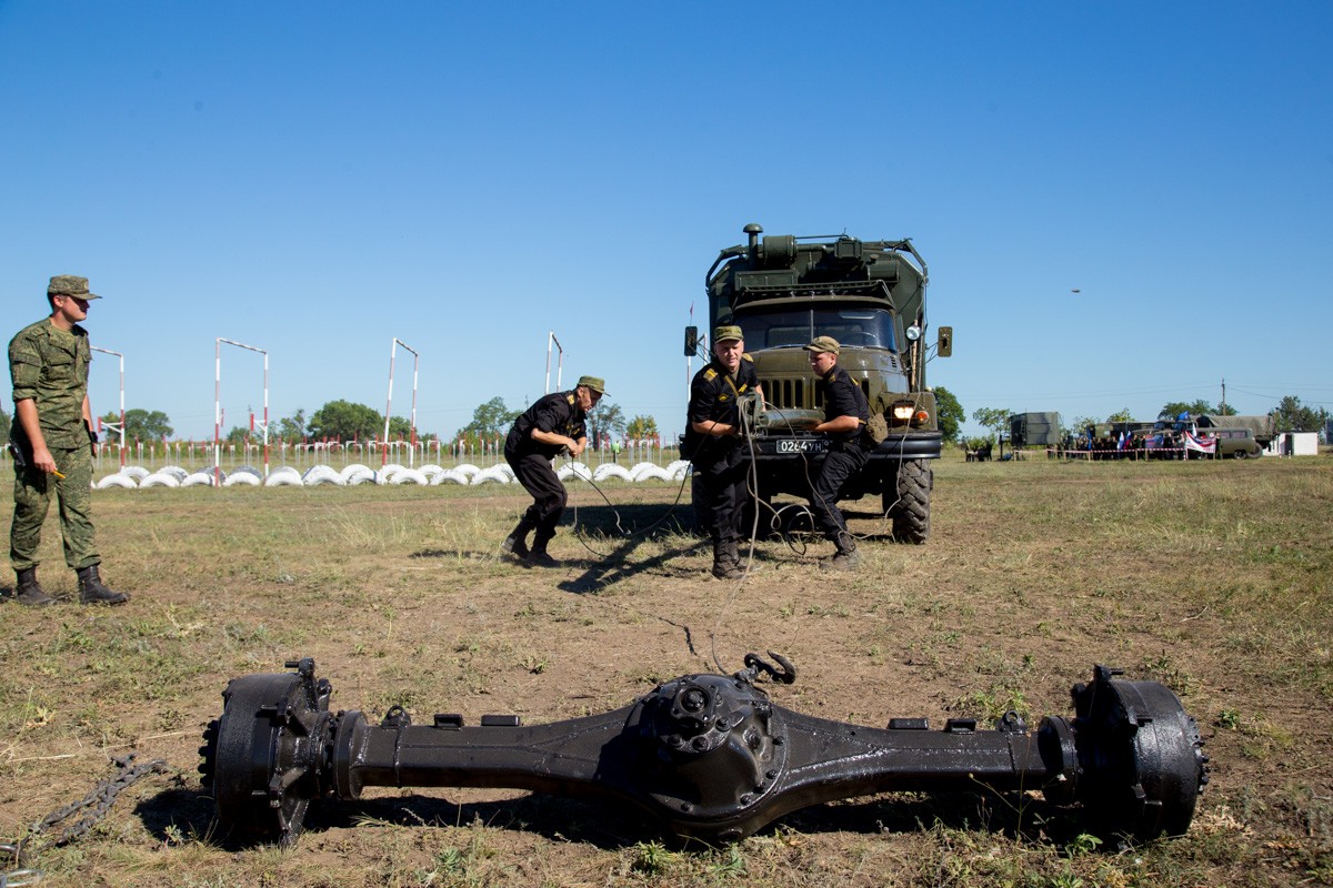 Ремонтники в рамках третьего этапа армейских состязаний преодолевали специально оборудованный маршрут с препятствиями протяженностью около трёх километров. Им также предстояло заменить колеса, установить кран-стрелы и переместить агрегат на точность.