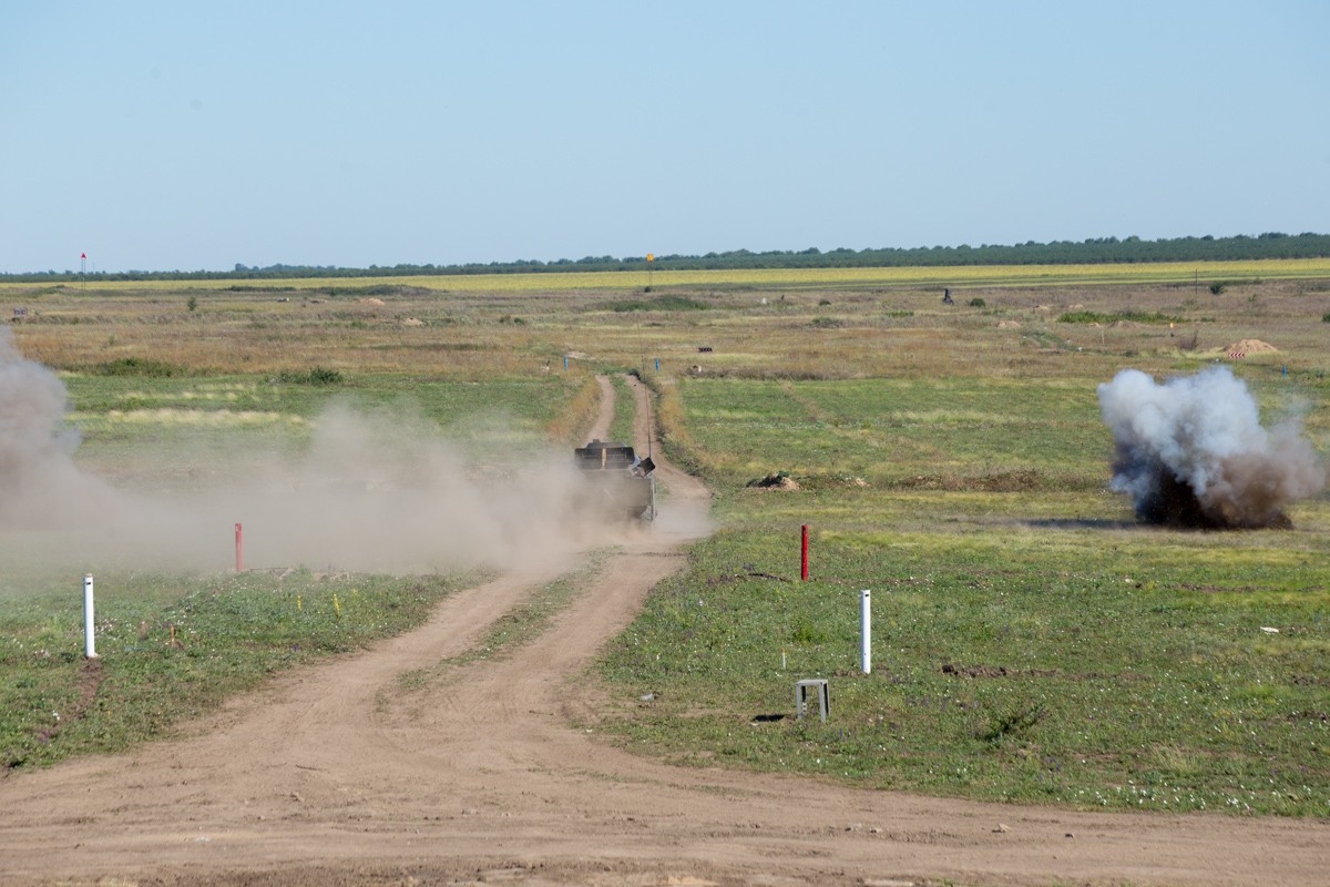 На танкодроме ОГРВ экипажам боевых машин на время предстояло преодолеть трассу протяженностью 5 км и пройти такие препятствия как «змейка», «холм», «габаритный коридор на косогоре», «ров с проходом» и «ров с колейным мостом». На некоторых участках трассы необходимо было ударить по условному противнику.