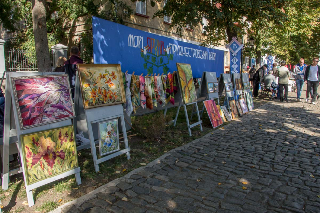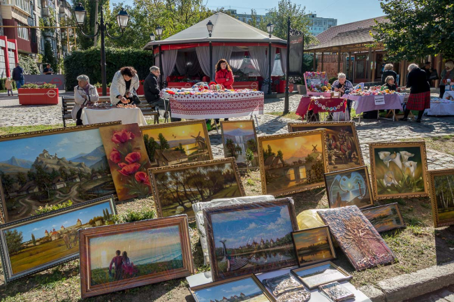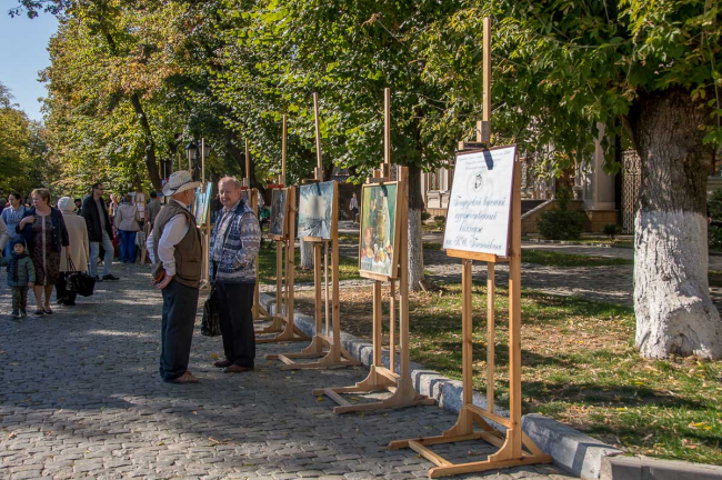 Бендеры, 6 октября. /Новости Приднестровья/. Улица Дворянская сегодня приглашала бендерчан по-особому отметить 610-летний юбилей любимого города. По ней разгуливали дамы и кавалеры в костюмах времен Екатерины Великой, сказочные персонажи и завлекали прохожих посетить выставку-продажу картин, статуэток и поделок местных мастеров. От осеннего, но тем не менее жаркого солнца гостей праздника спасала аллея из 140-ка зонтов.