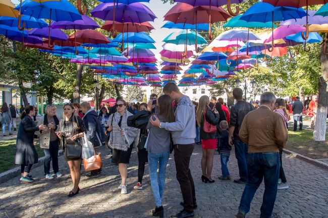 К слову, именно яркие, словно парящие в воздухе зонтики и стали самым популярным местом фотографирования у бендерчан. Многие, вспомнив героиню сказочной повести детской писательницы Памелы Трэверс няню-волшебницу Мэри Поппинс, пытались так же улететь на зонтике навстречу «ветру перемен».