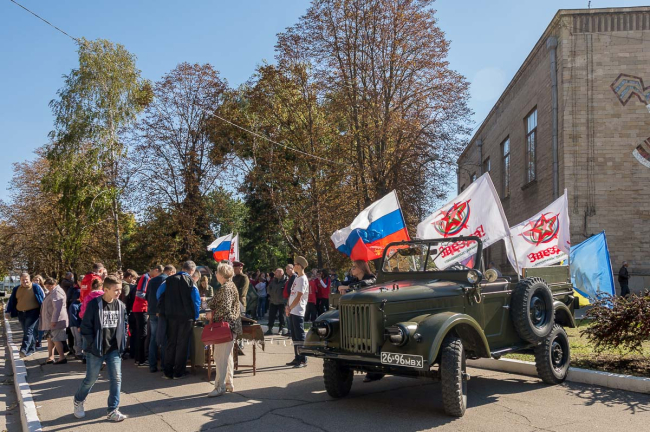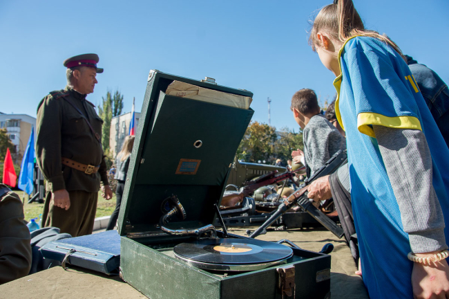 «Мы выставили ГАЗ-69 (советский автомобиль повышенной проходимости – прим. ред.), копию броневика времен Великой Отечественной войны, оружие и военное обмундирование. Интерес был огромный: подходили, рассматривали, примеряли фуражки и каски, фотографировались», - отметил директор Днестровско-Прутского центра Альберт Доржеев.