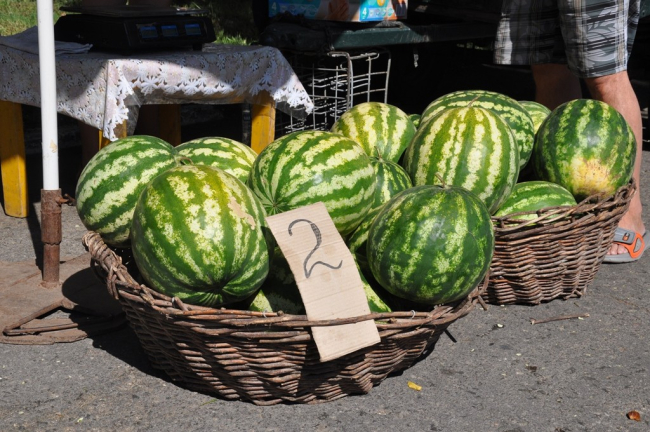 «С огорода собрали арбузы, дыни, чеснок, лук, виноград, сливу, помидоры. Всё домашнее. Выращиваем для себя и внуков, а излишки продаем. Мы постоянно приезжаем. И покупатели довольны, что можно возле дома купить продукты, и мы. Наша продукция экологически чистая – тому подтверждение лабораторные исследования», - рассказал Леонид Николаевич.