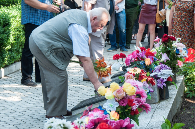 Первый президент Приднестровья Игорь Смирнов у памятника, воздвигнутого на месте трагедии, от имени приднестровцев выразил соболезнования родственникам погибших и низко им поклонился.