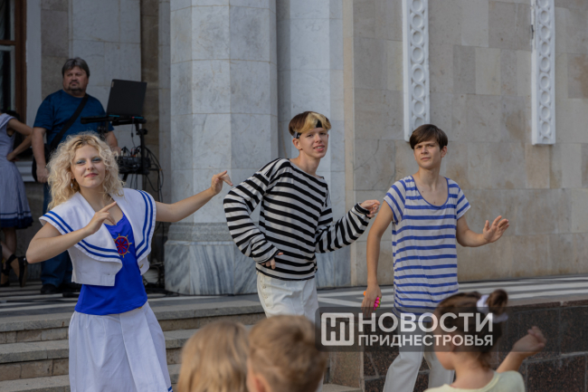 Морская королева приготовила задания не только для детей, но и их родителей. Одно из них - танцевальный баттл, в котором нужно было показать умение двигаться в разных стилях. Для победителя предусмотрен приз – набор канцелярских товаров, который пригодится к началу учебного года.