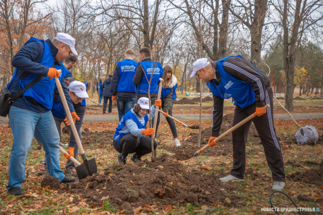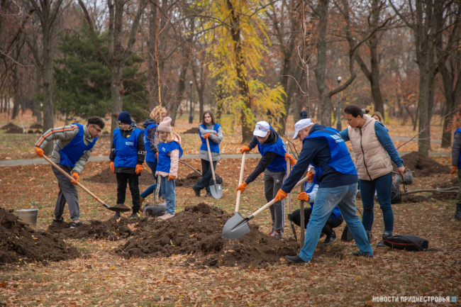Активно высаживали деревья сегодня и волонтёры из Общеприднестровского народного форума. По словам Сергея Мельниченко, гуляя по парку раньше, он не замечал пустые участки, которые здесь есть. А теперь тут будут расти деревья.