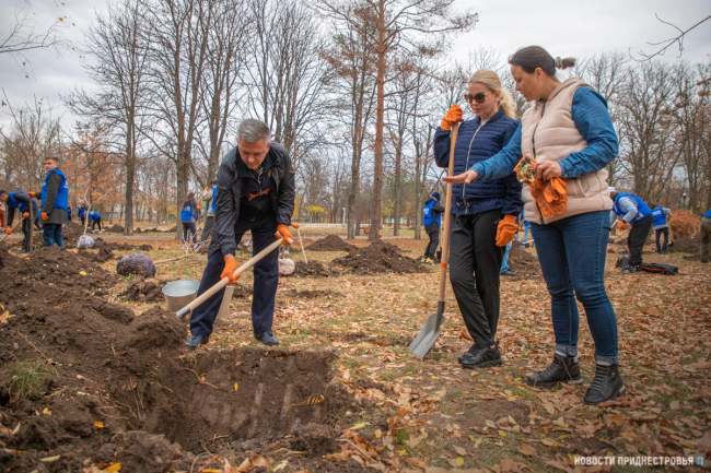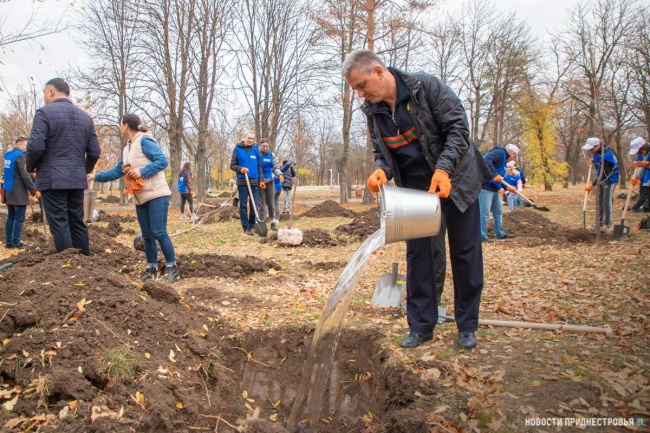 «Думаю, то, что мы сегодня делаем, - это очень полезно. Теперь, прогуливаясь по парку, буду видеть деревья, которые посадил сам», - поделился волонтёр, член Общеприднестровского народного форума Сергей Мельниченко.