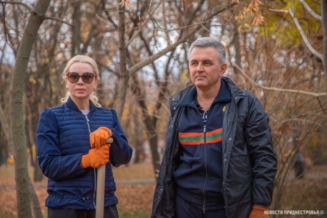 Тирасполь, 6 ноября. /Новости Приднестровья/. В парке культуры и отдыха «Победа» Тирасполя сегодня организовали экологическую акцию. В ней приняли участие Президент ПМР Вадим Красносельский с супругой Светланой, волонтеры общественных организаций, горожане.