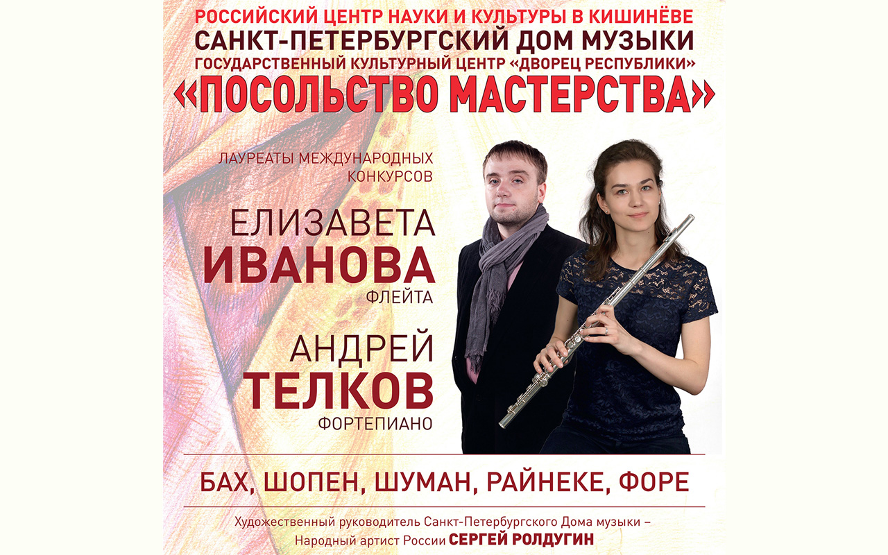 Не стал исключением и российский международный проект «Посольство мастерства». 9 марта солисты Санкт-Петербургского Дома музыки Елизавета Иванова (флейта) и Андрей Телков (фортепиано) дадут сольный концерт во Дворце Республики.