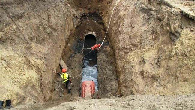 Поврежденный канализационный коллектор может привести к обвалу дороги