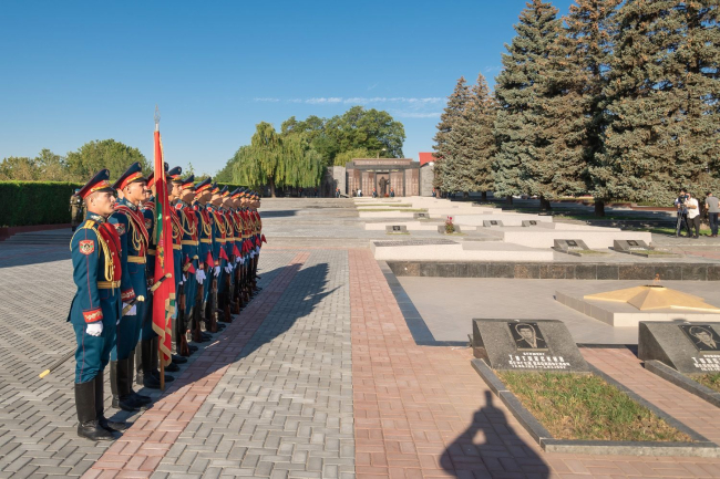 Венки и цветы в этот знаменательный для республики день легли к Вечному огню, на могилы советских воинов, освобождавших Тирасполь в апреле 1944 года, тех, кто погиб, защищая Приднестровье в 1992-м, к монументу «Скорбящая мать» и памятнику тираспольчанам, погибшим при исполнении интернационального долга в Афганистане.