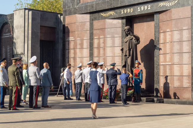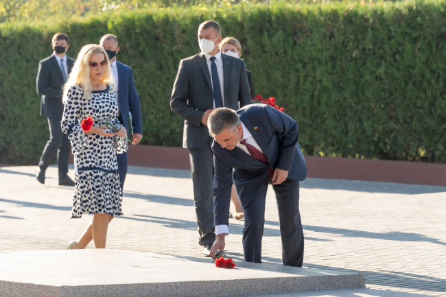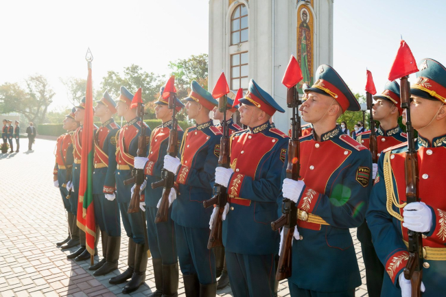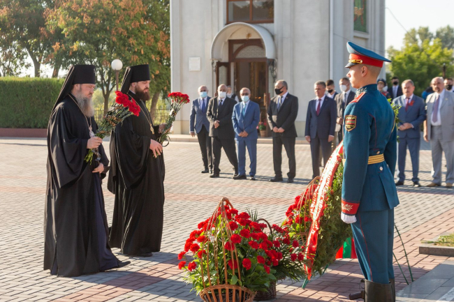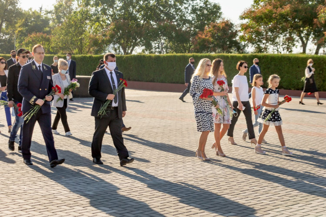 Тирасполь, 2 сентября. /Новости Приднестровья/. Празднование 30-й годовщины образования Приднестровской Молдавской Республики началось с церемонии возложения цветов на столичном Мемориале Воинской Славы. Отдать дань памяти и уважения воинам-защитникам Отечества пришли Президент ПМР Вадим Красносельский с семьей, первый Президент ПМР Игорь Смирнов, руководители и представители органов госвласти и управления, официальные зарубежные делегации, представители Тираспольско-Дубоссарской Епархии.