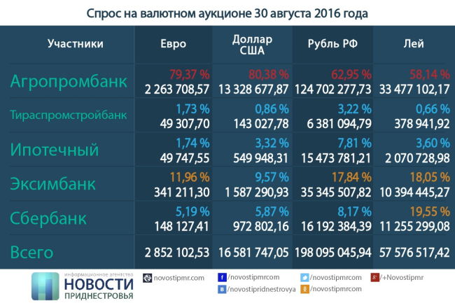 «Спрос представлен крупнейшим банком ЗАО “Агропромбанк” в пользу своих клиентов (главным образом, это заявки одного крупного импортёра). При этом имеющиеся ресурсы ПРБ в леях Республики Молдова не позволяют в полном объёме удовлетворить даже заявки только этого клиента, в то время как коммерческие СМИ периодически распространяют недостоверную информацию о формировании валютных резервов в леях Республики Молдова», - сообщается на сайте банка.