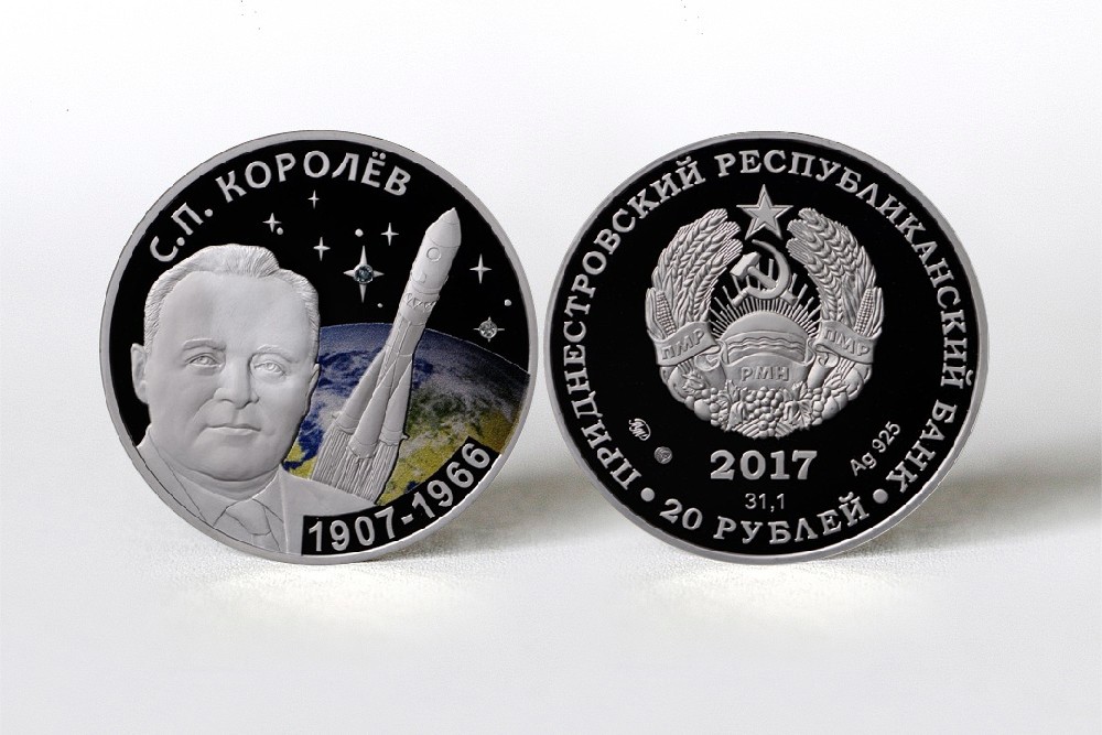 Тирасполь, 15 декабря. /Новости Приднестровья/. С 15 декабря в обращение вводятся памятные монеты Приднестровского республиканского банка, выполненные из драгоценного металла (серебра 925 пробы) номиналом 20 рублей ПМР «110 лет со дня рождения Королёва С.П.». Монеты продолжили серию «Освоение космоса». Они выпущены тиражом 300 штук.