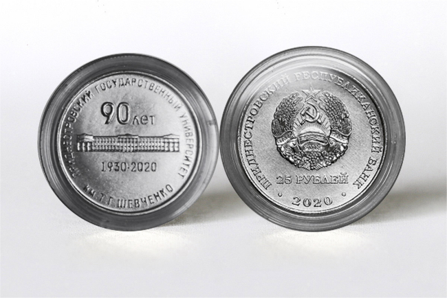 Тирасполь, 11 ноября. /Новости Приднестровья/. Центробанк ПМР ввел в обращение памятные монеты «90 лет образования Приднестровского государственного университета им. Т.Г. Шевченко». Они пополнили серию «Памятные даты и события Приднестровья».