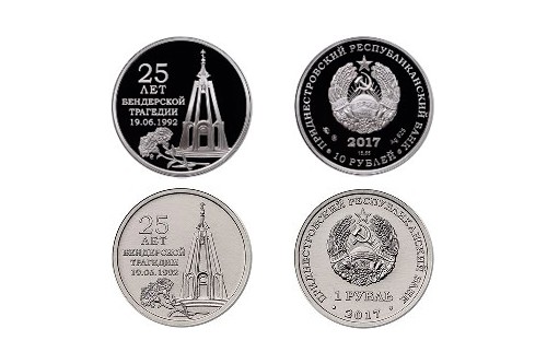Тирасполь, 9 июня. /Новости Приднестровья/. Приднестровский республиканский банк с 9 июня вводит в обращение памятные монеты номиналом 1 и 10 рублей «25 лет Бендерской трагедии» серии «Приднестровье. Ценности, события и лица».
