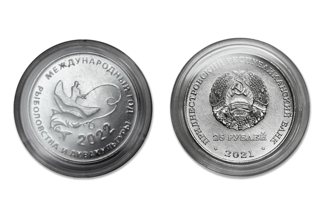 Тирасполь, 29 марта. /Новости Приднестровья/. Приднестровский республиканский банк ввёл в обращение памятные монеты «2022 – Международный год кустарного рыболовства и аквакультуры» серии «Международные события и ценности». Они выполнены из недрагоценных металлов достоинством 25 рублей. Тираж составляет 2,5 тысячи штук.