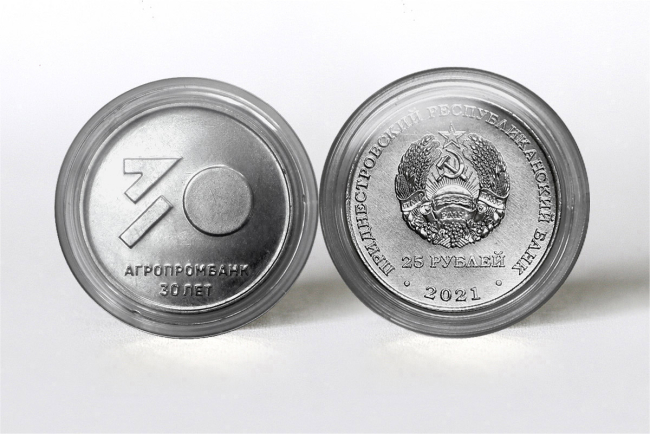 Так, памятные монеты «30 лет Агропромбанку» выполнены из недрагоценных металлов, достоинством 25 рублей, сообщается на сайте ПРБ.