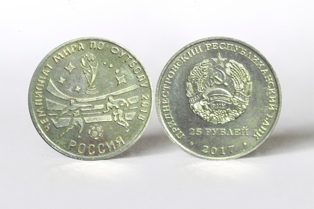 Тирасполь, 27 апреля. /Новости Приднестровья/. Приднестровский республиканский банк вводит в обращение памятные монеты из недрагоценных металлов достоинством 25 рублей «Чемпионат мира по футболу - 2018. Россия». Они пополнят серию «Спорт», сообщается на сайте ПРБ.