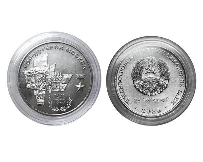 Тирасполь, 23 июня. /Новости Приднестровья/. С сегодняшнего дня Приднестровский республиканский банк вводит в обращение памятные монеты из недрагоценных металлов достоинством 25 рублей «Город-герой Москва» серии «Города-герои в годы Великой Отечественной войны 1941-1945 годов», говорится в пресс-релизе Центробанка.