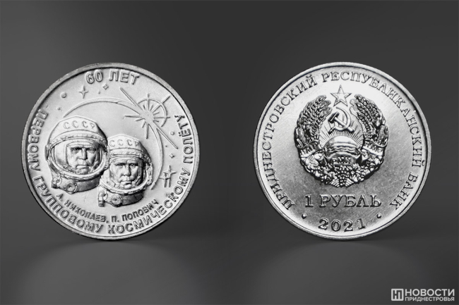 Тирасполь, 12 декабря. /Новости Приднестровья/. Приднестровский республиканский банк ввёл в обращение памятные монеты «60 лет первому групповому космическому полёту» серии «Освоение космоса». Их номинал – 1 рубль.