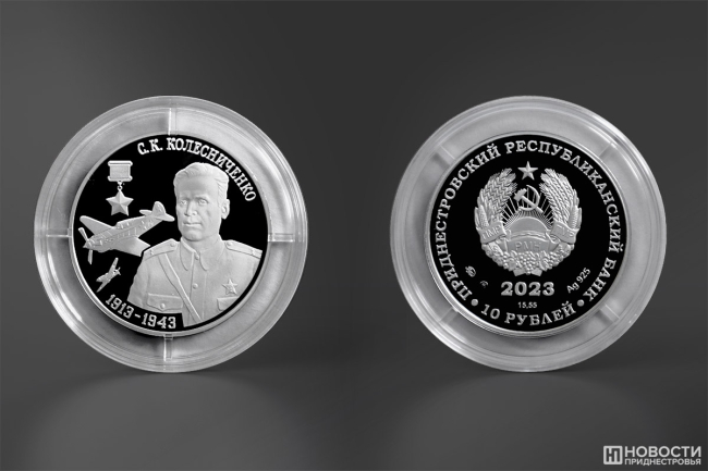 Серию «Герои Советского Союза в годы Великой Отечественной войны» пополнили серебряные монеты «С.К. Колесниченко – Герой Советского Союза (1913-1943)» номиналом 10 рублей. Их тираж составляет 100 штук. Как сообщается на сайте ПРБ, эти монеты имеют идентификационный сертификат (паспорт), упакованы в прозрачную капсулу и представлены в футляре.
