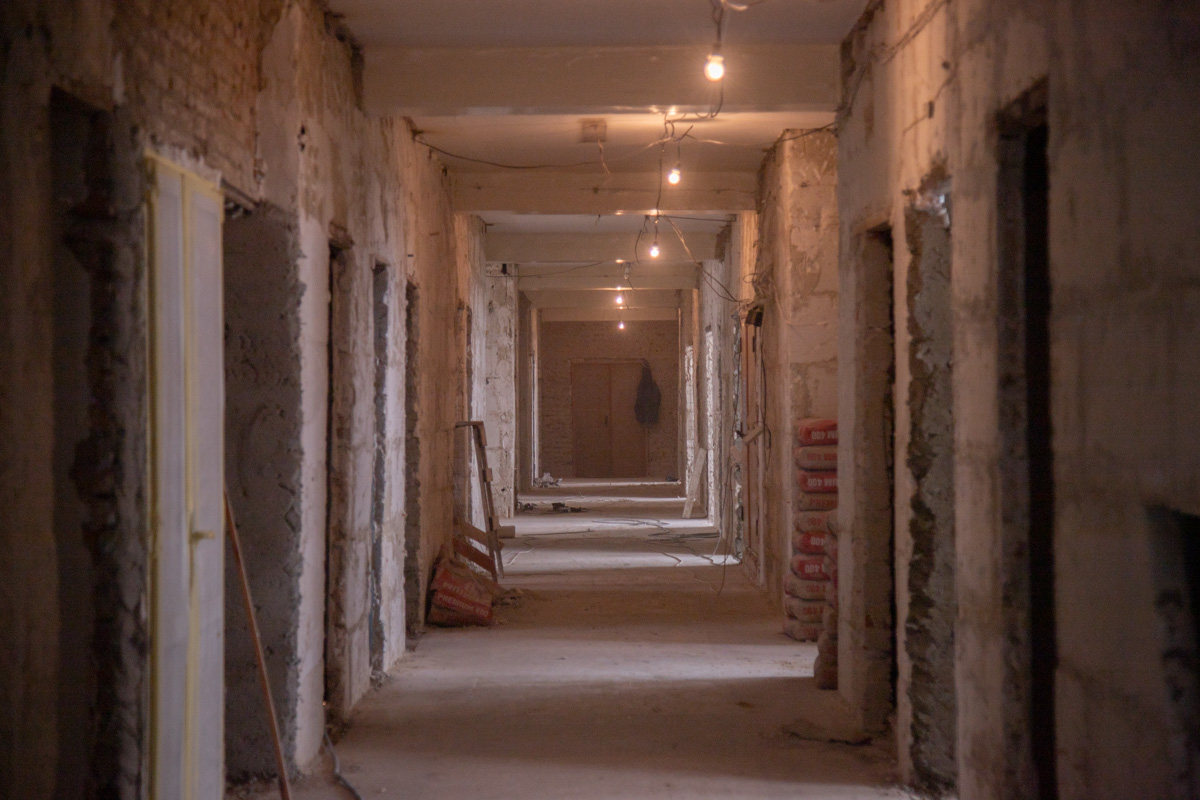 Сейчас ремонтные работы ведутся на двух этажах. На первом расположено приёмное отделение, которое ждёт перепланировка. В том числе здесь будут предусмотрены изоляторы для инфекционных больных.