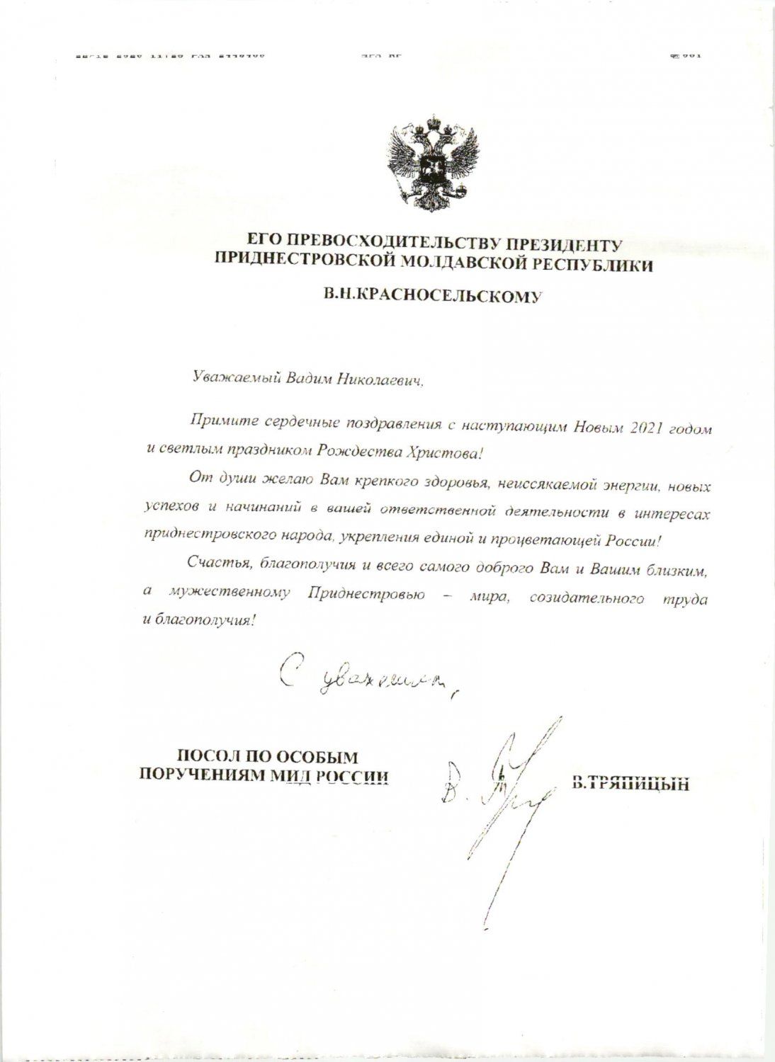 Президент ПМР Вадим Красносельский отмечает 56-летие